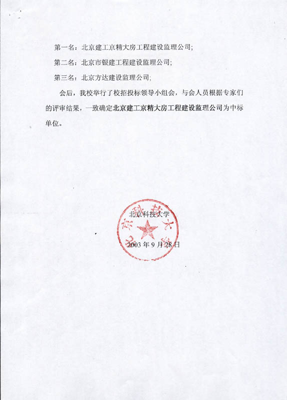 北 京 科 技 大 学 后 勤 基 建 管 理 处